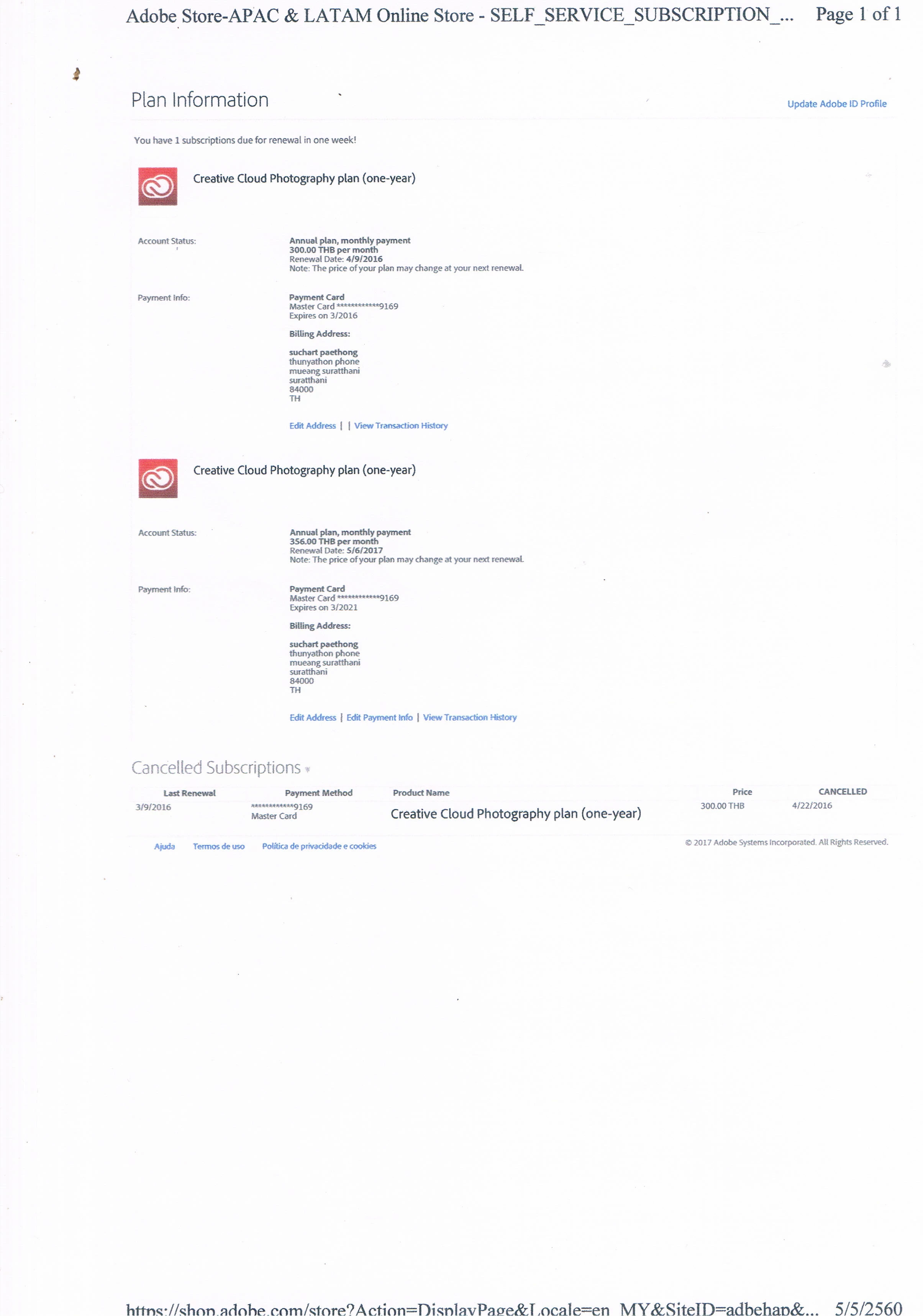 อยากจะขอยกเลิกการเช่าซื้อรายเดือนครับ เนื่องจากใน Adobe Creative Cloud