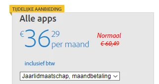 At the following page, I found an offer for all adobe programs for €29,99 ex VAT.: Creatieve desktopapps van Adobe | Adobe Creative Cloud
