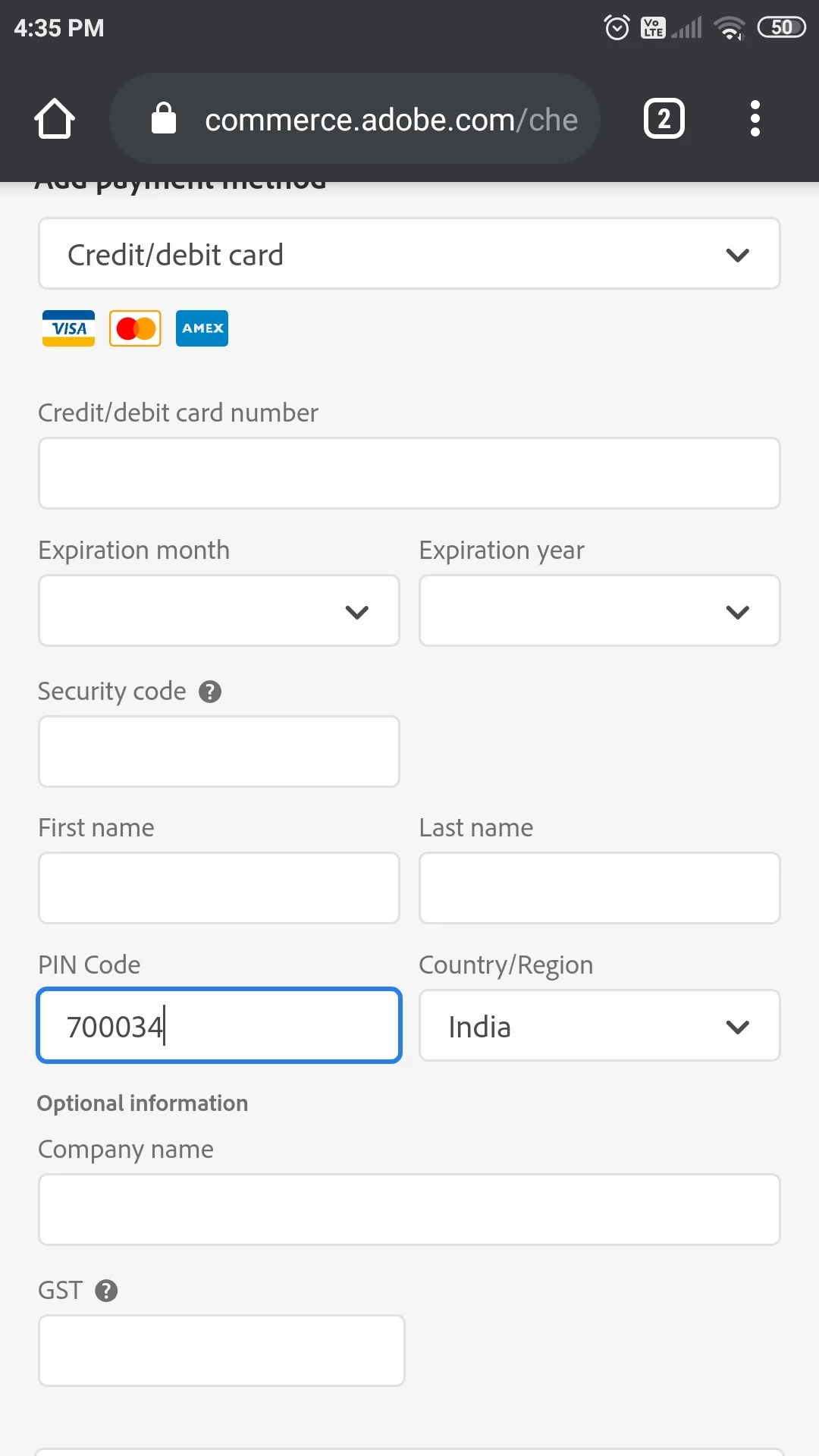 I'm from india and I want to subscribe photography pack but ever time i try for subscription it's show in valid pin code