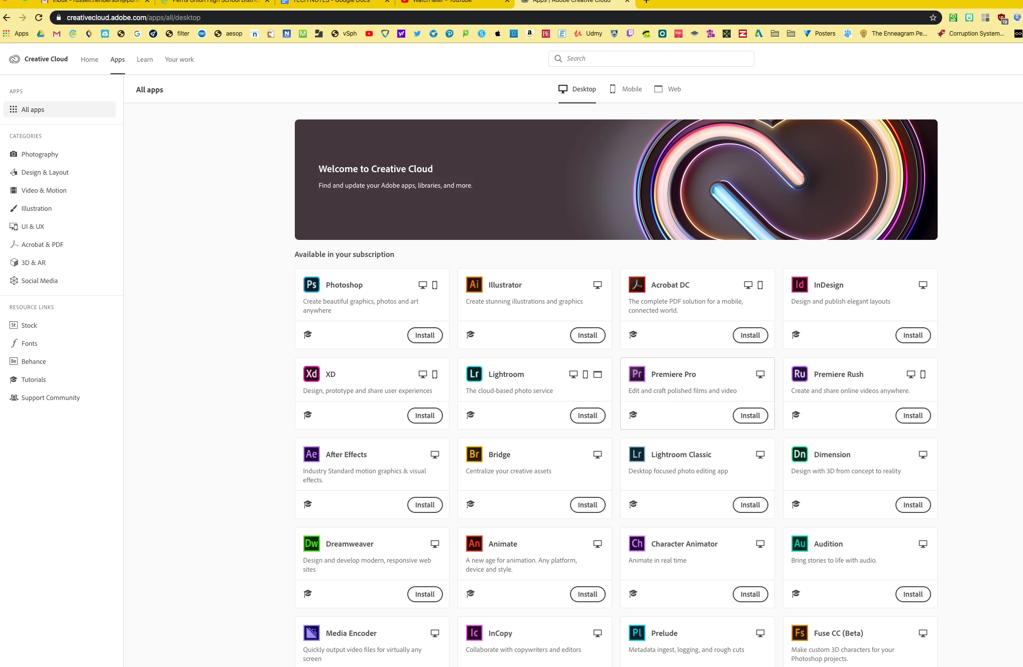 When I visit creativecloud.adobe.com I can log in with Google and all the apps that I have access to install show up in the app window. We have users who only get prompted to install Creative Cloud but do not show any apps available for download. I attached a screenshot of what I see when I log in and also a screenshot of what other users see when they are logged in.