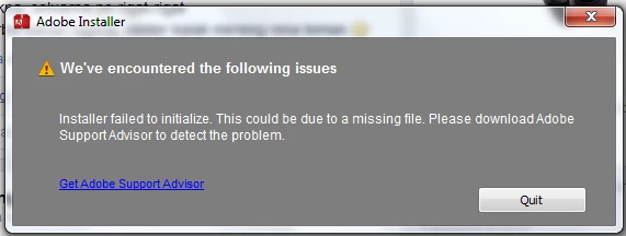 "Installer failed to initialize. File not found." or "Installer failed to initialize. This could be due to missing files."