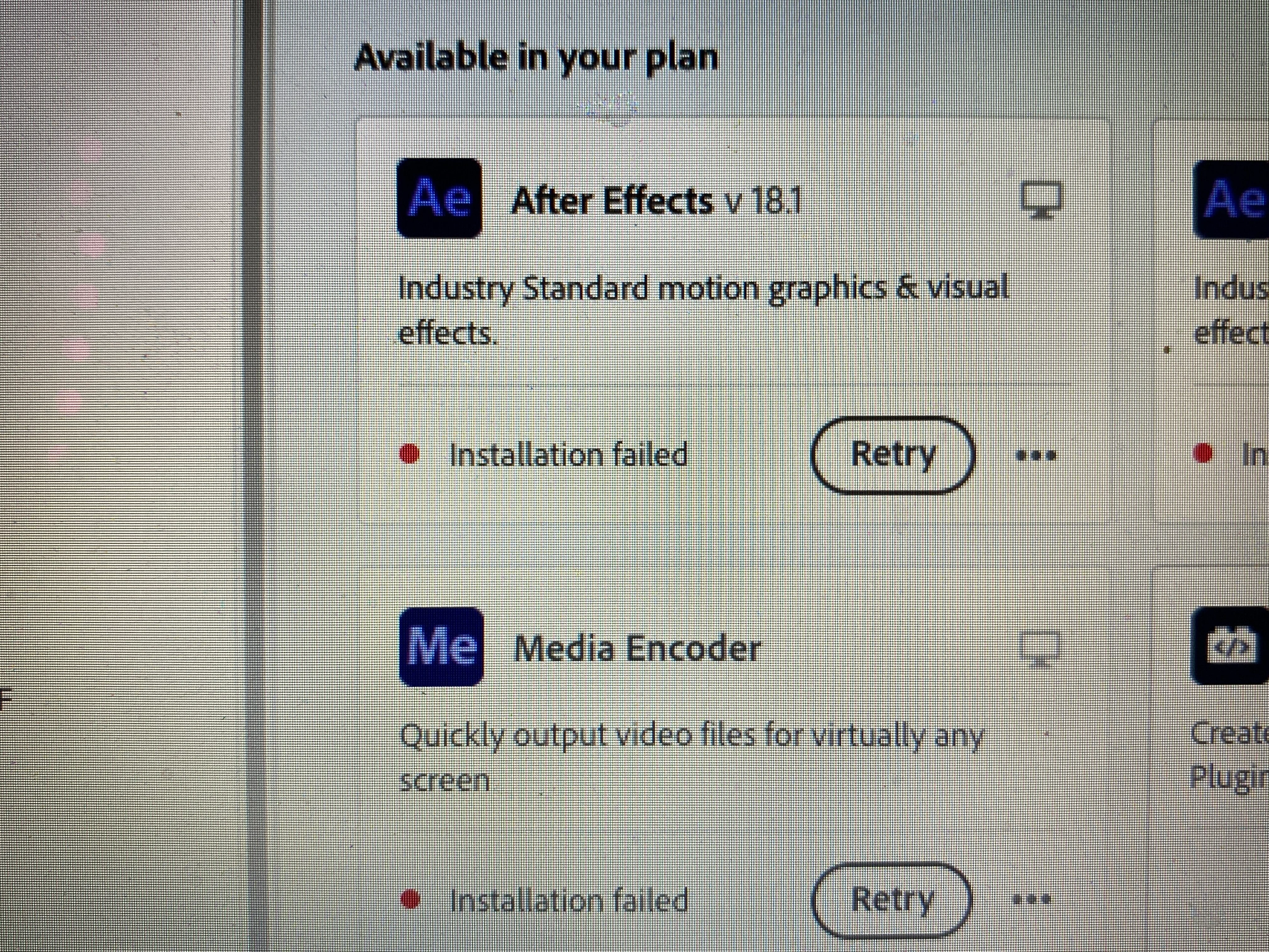 Hi! I am a new use trying to Adobe After Effects but After Effects won't seem to install. I uninstalled and reinstalled CC and I tried to free up all the storage I can but every time I retry, it hits 4% then "Installation failed". I am on macOS Mojave. After Effects says it is compatitble on this laptop but it just doesn't work. What do I do?