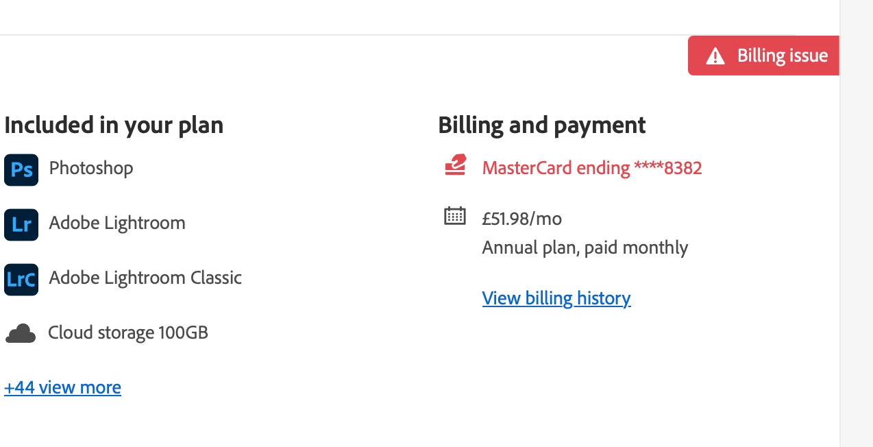 Has adobe blocked me? I'm trying to figure out if theres a delay in their ststem so it still thinks I owe this months subscription?