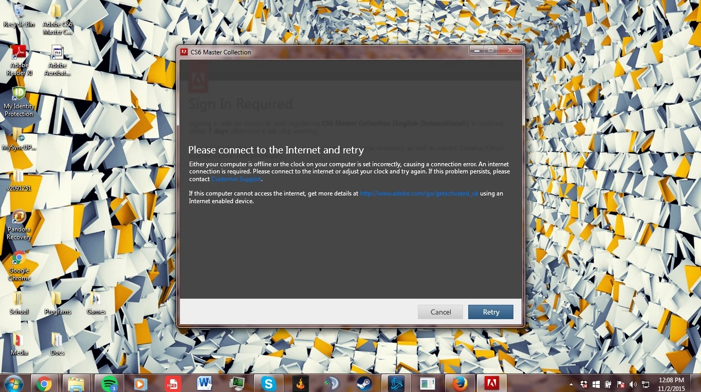 This is the message I get every time I try to sign in to the Adobe Application Manager to register my programs from the CS6 Master Collection.