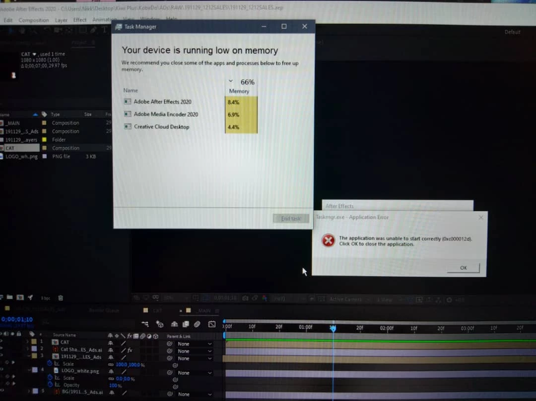 I have been using adobe apps for a while on my mac and it was fine. after  getting my new Illegear Raven SE-R and installing some creative cloud applications (specifically after effects, Photoshop. Illustrator, media encoder and XD) all of the applications run and crashes very often while i was halfway thru my projects. There are also some weird naming files appearing in the same folder i saved my files. After it crashes, my screen would go black and everything starts to lag. When th screen is back on, there will be a weird square appear on the middle of the screen.
