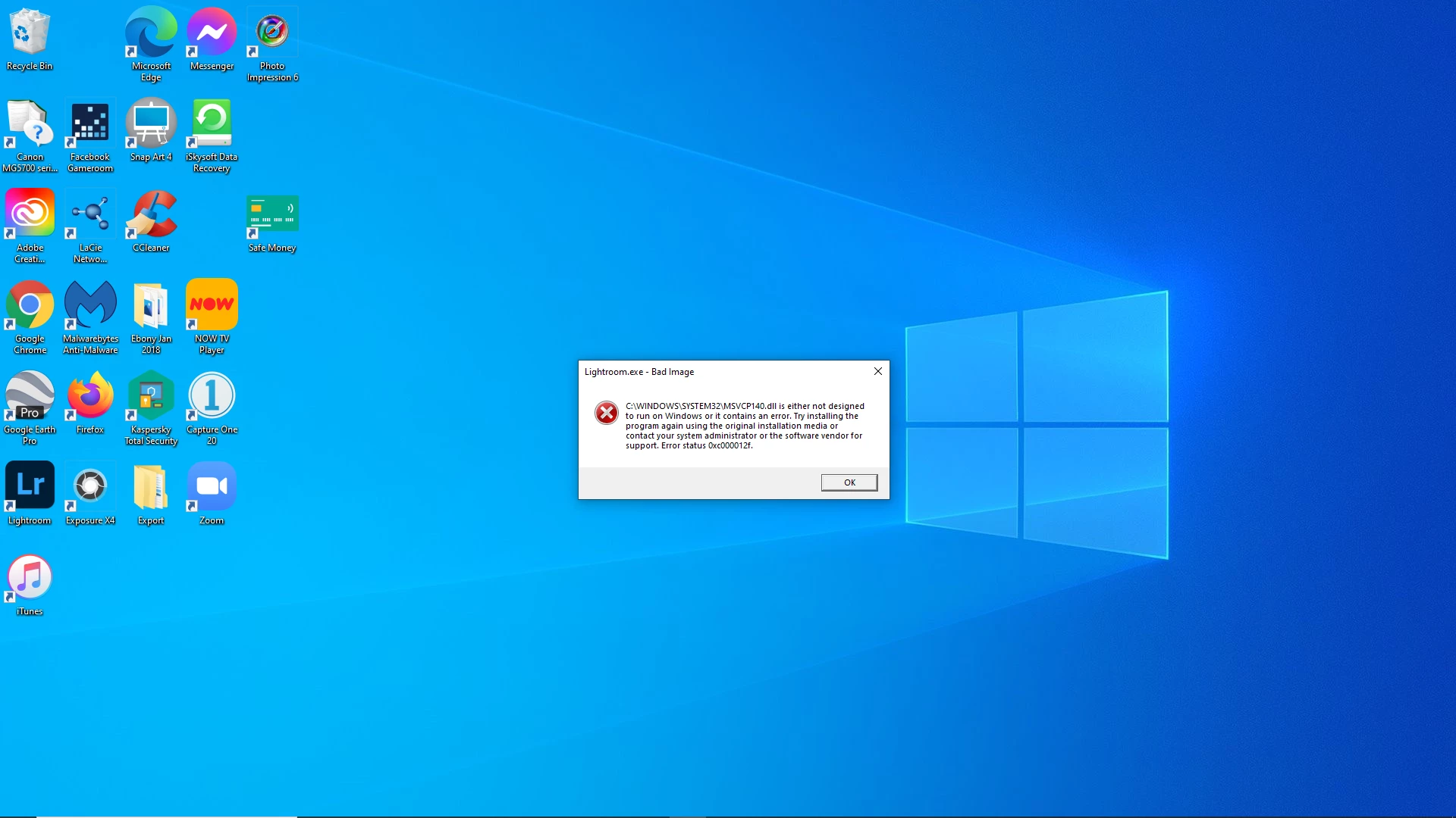 Hi anyone know how to fix this issue? Whenever I try opening any adobe apps I get this, followed by similar error messages. I have tried to uninstall adobe to try the reinstall method, however none of the adobe apps will uninstall!!