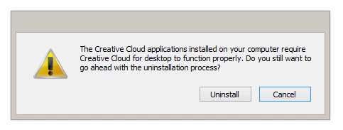 2) Next I tried uninstalling, it says I can't without uninstalling my "Creative Cloud applications" (Photoshop and Lightroom)