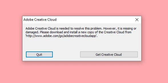 "Adobe Creative Cloud is needed to resolve this problem. However, it is missing or damaged."