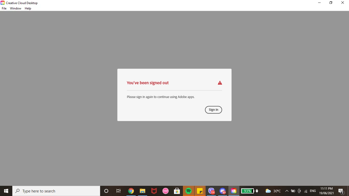 Adobe Creative Cloud Stuck on Loading, prompts me to sign in again after signing me out.