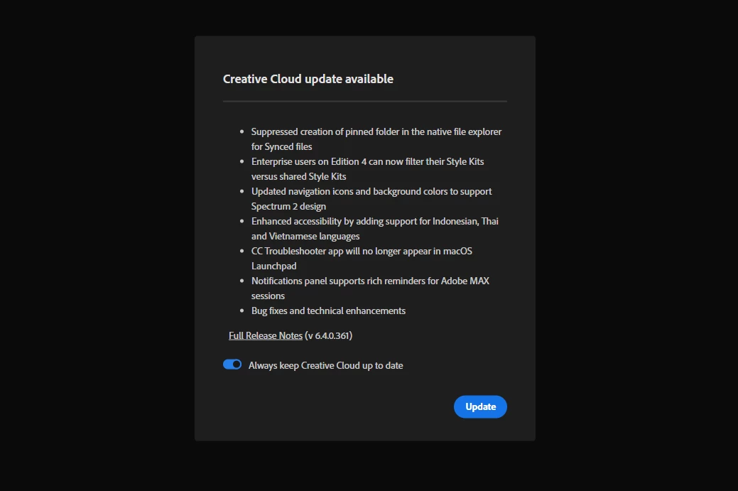 Adobe Creative Cloud Update Installer refuses to work