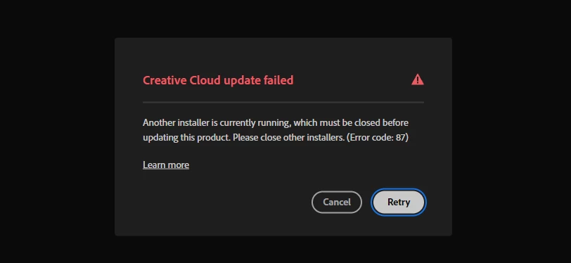 I was recently attempting to download additional adobe fonts onto my computer for a commisioned project and when I attempted to access my creative cloud, it demanded an update to version 6.4.0.361 (it wouldn't let me open the homepage without installing the update) and then repeatedly refused to update, stating Error Code 87. I have checked my task manager, I have tried restarting my computer, I've attempted to re-download creative cloud, and yet I still keep getting the Error 87. Any advice would be greatly appriciated, as I kind of need my creative cloud to work for the project.