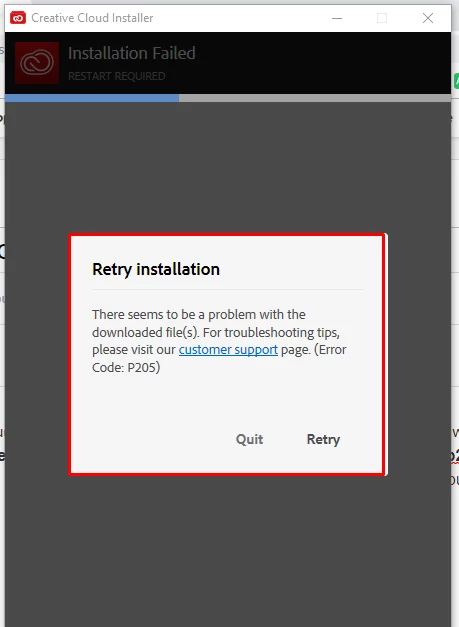 I accidentally clean my adobe creative cloud by adobe cleaner tool. Now I am trying to install it again but it won't installing. It stuck on 39% and then after 5 mins shows me an error "There seems to be a problem with the downloaded files (error code p205)". I have tried every solution that I searched on adobe forms but didn't work. I even try to download direct link but couldn't download it. Can you guys please help me to install it.