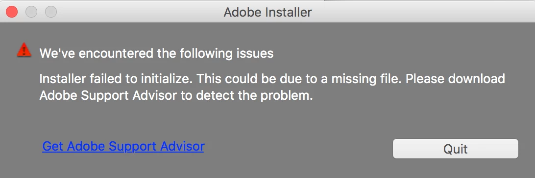 "Installer failed to initialize. File not found." or "Installer failed to initialize. This could be due to missing files."