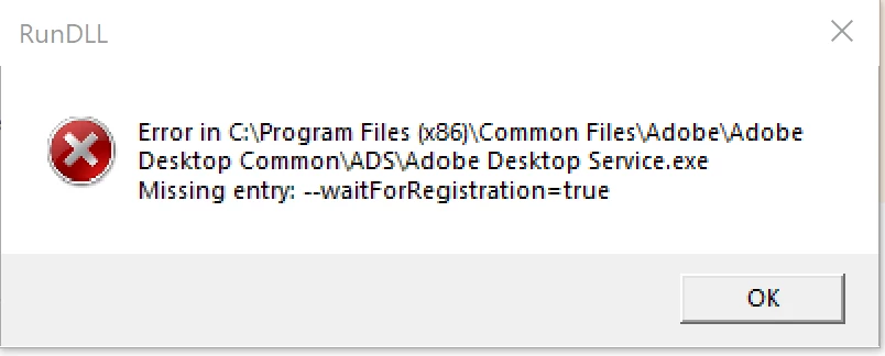 Adobe Desktop Service Error - Missing Entry: waitForRegistration=true