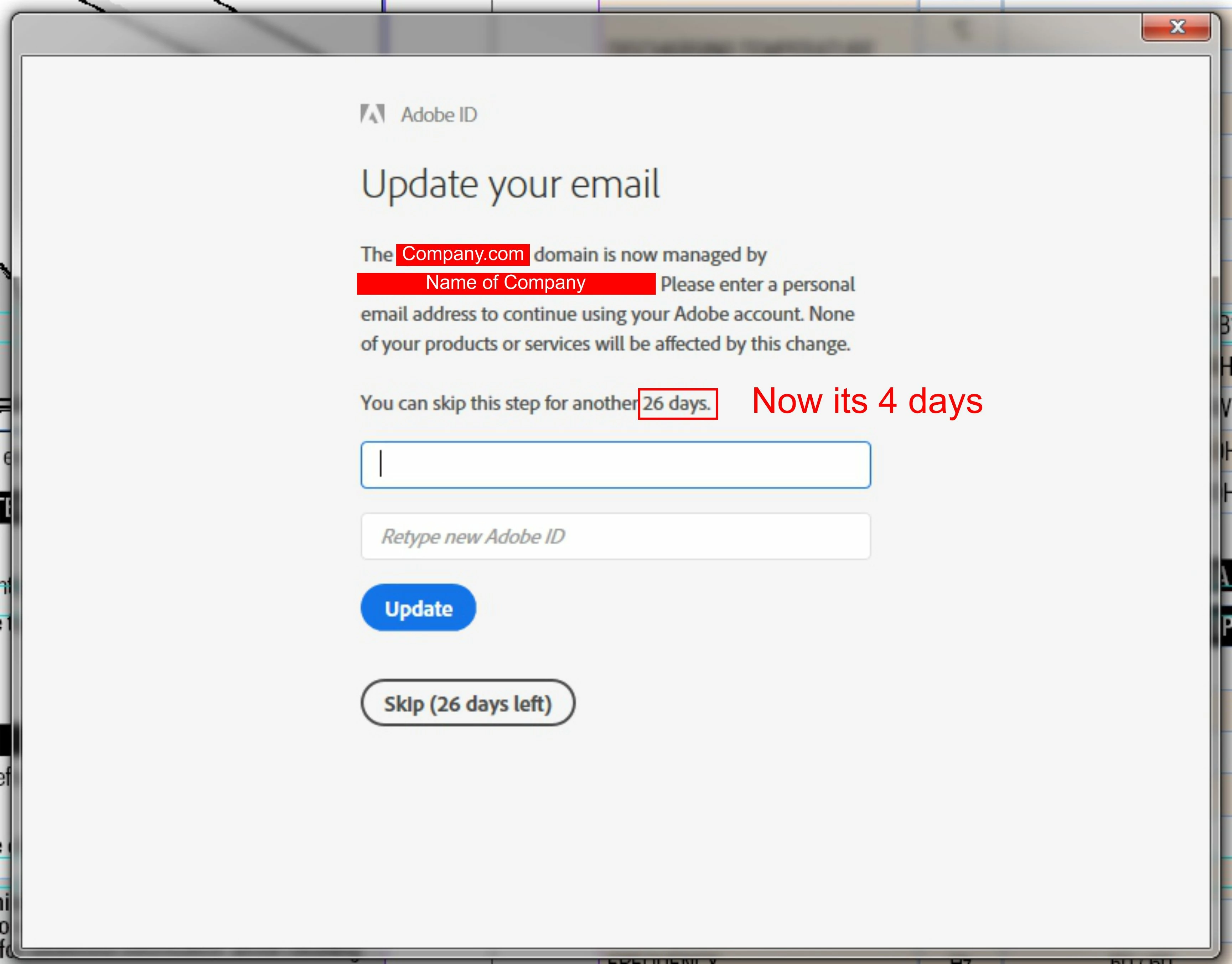 Adobe, Enter a personal Email address request, 29 days to complete