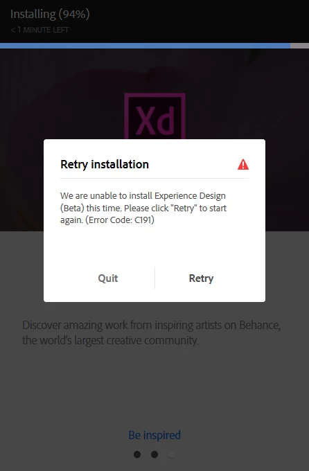 Adobe Experience Design on Win 10 Install - Error Code: C191