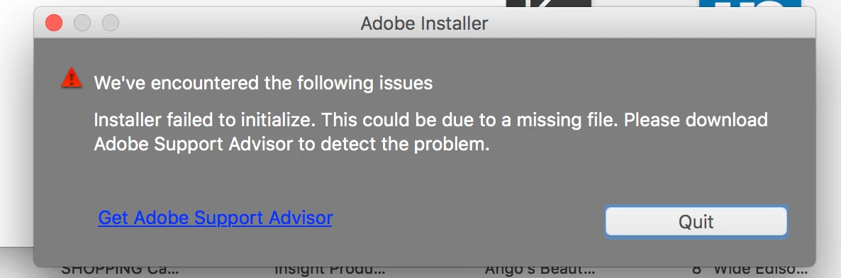 Adobe installer [Unable to install CS6 on Mac: installer failed to initialize]