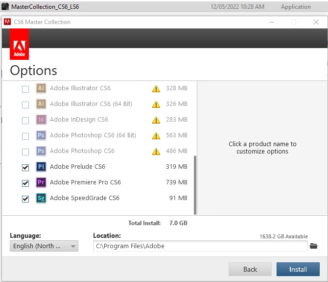 Adobe Master Collection CS6 "Not available for the selected language" install error
