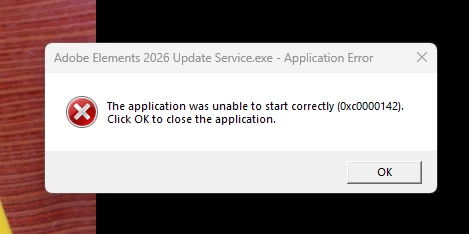 I have been trying to load Adobe Premiere Elements 2026 and get the following error message: