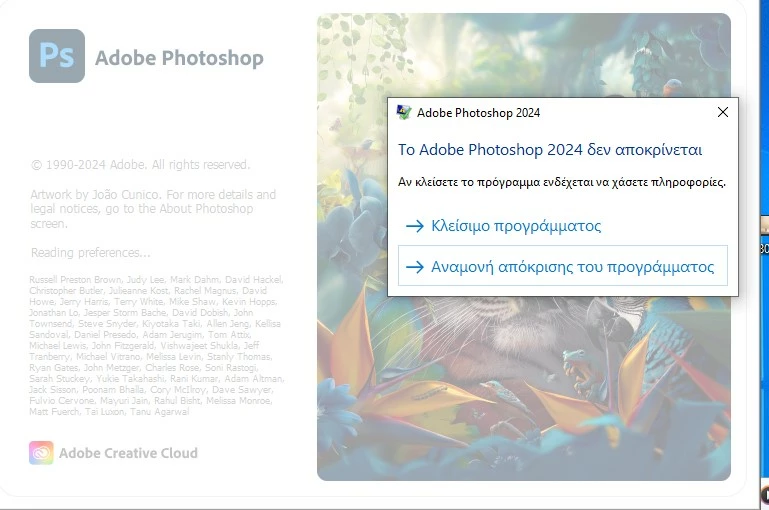 adobe programs won't open on my desctop computer. They start, the splash screen appears, and then they stop.