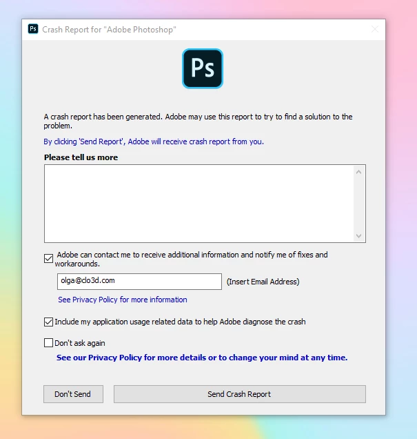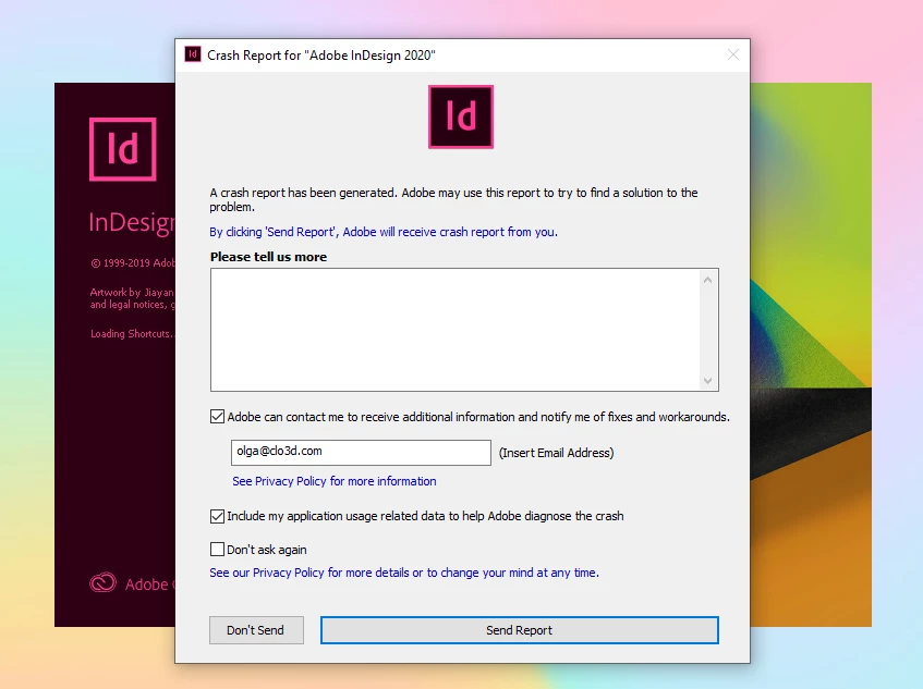 - Adobe Photoshop / Illustrator / Indesign / Premier - there is a crash report