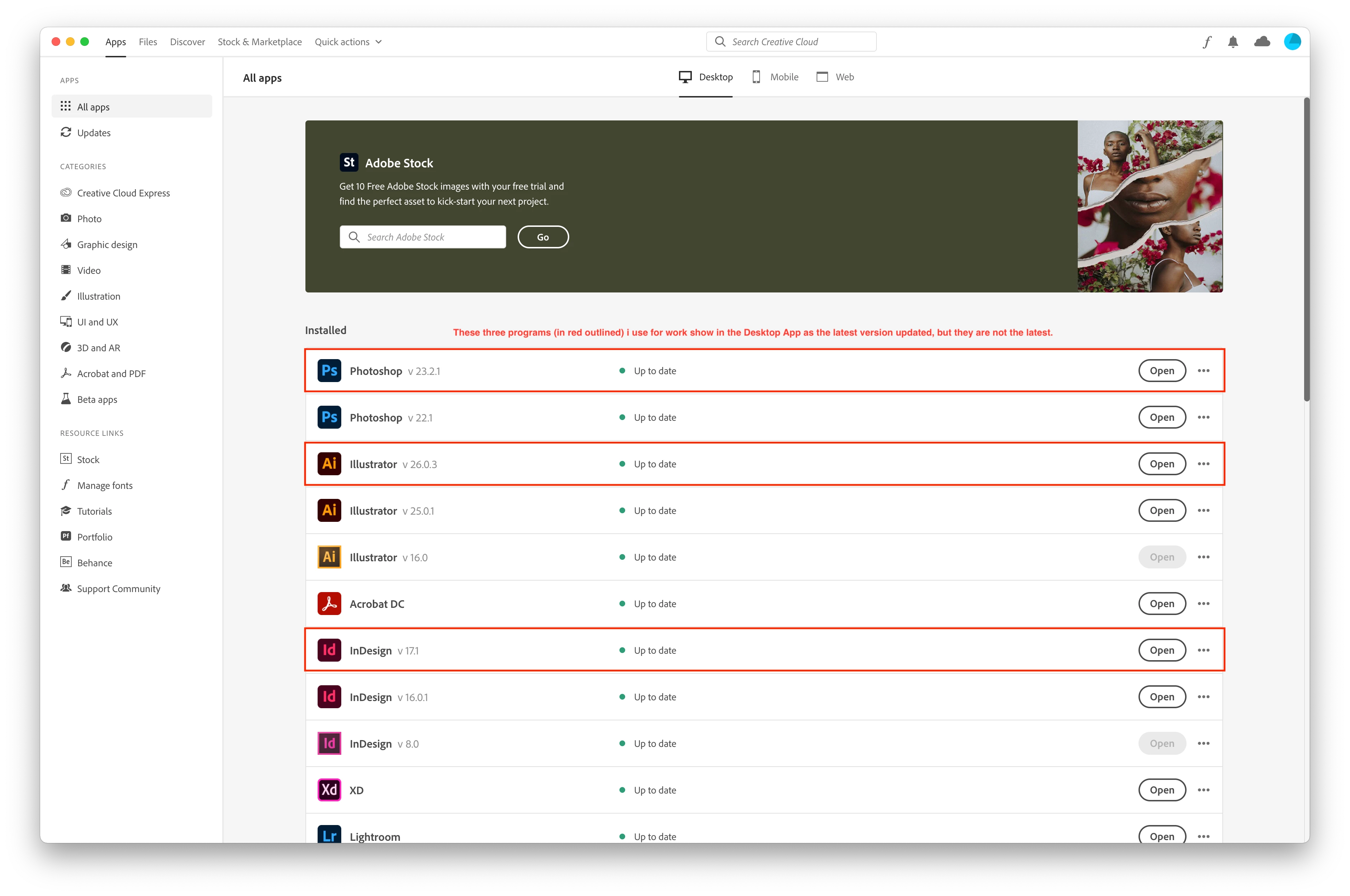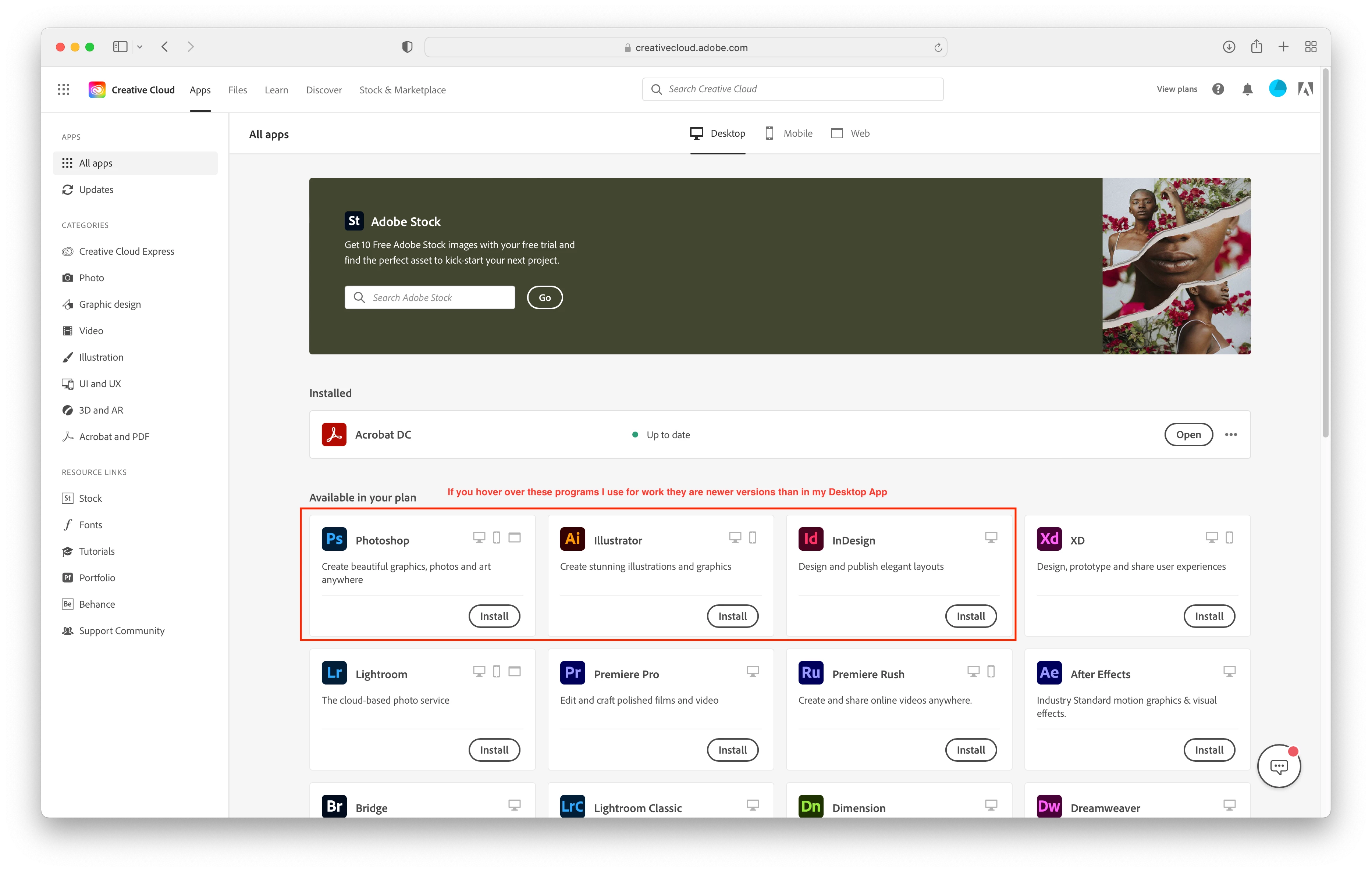 - For the ones i have, if i hover over them, they show up newer than the ones in the Adobe CC desktop app.