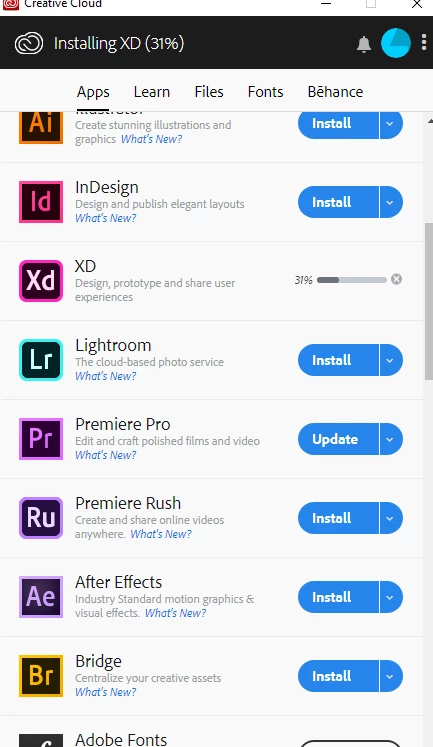 Adobe Xd Installation stuck at 17.5%