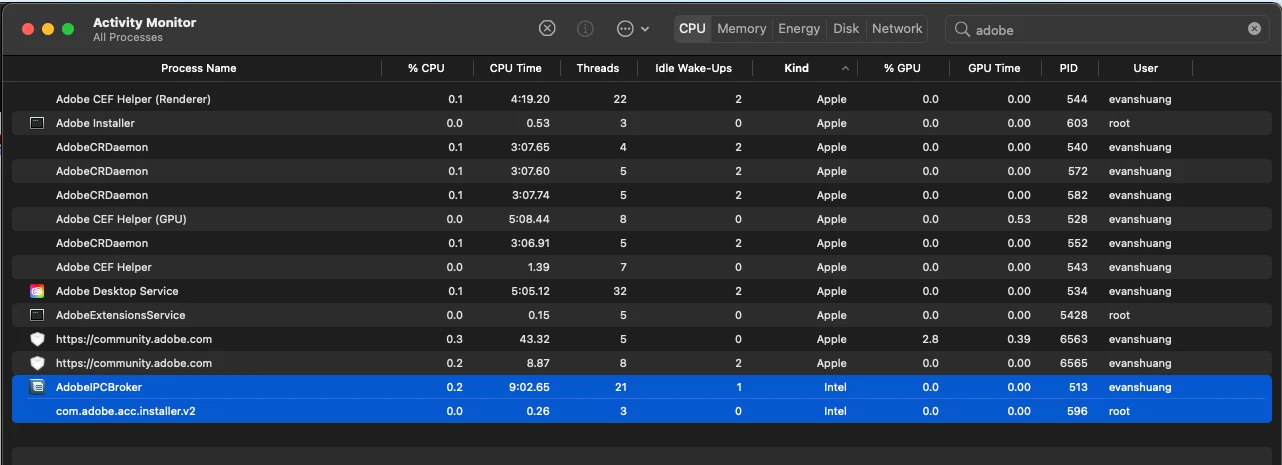 It's good to see Photoshop and Lightroom are now upgraded to native Apple Silicon. When I check in Activity Monitor, I still see AdobePCBroker and com.adove.acc.installer.v2 are still under the Intel instructions (supposedly translated via Rosetta 2). May I know what are these 2 components and whether they will be upgraded to native Apple Silicon instructions?