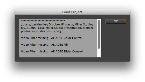 Also, when opening the file in Premier, a "Load Project" window open listing the following: