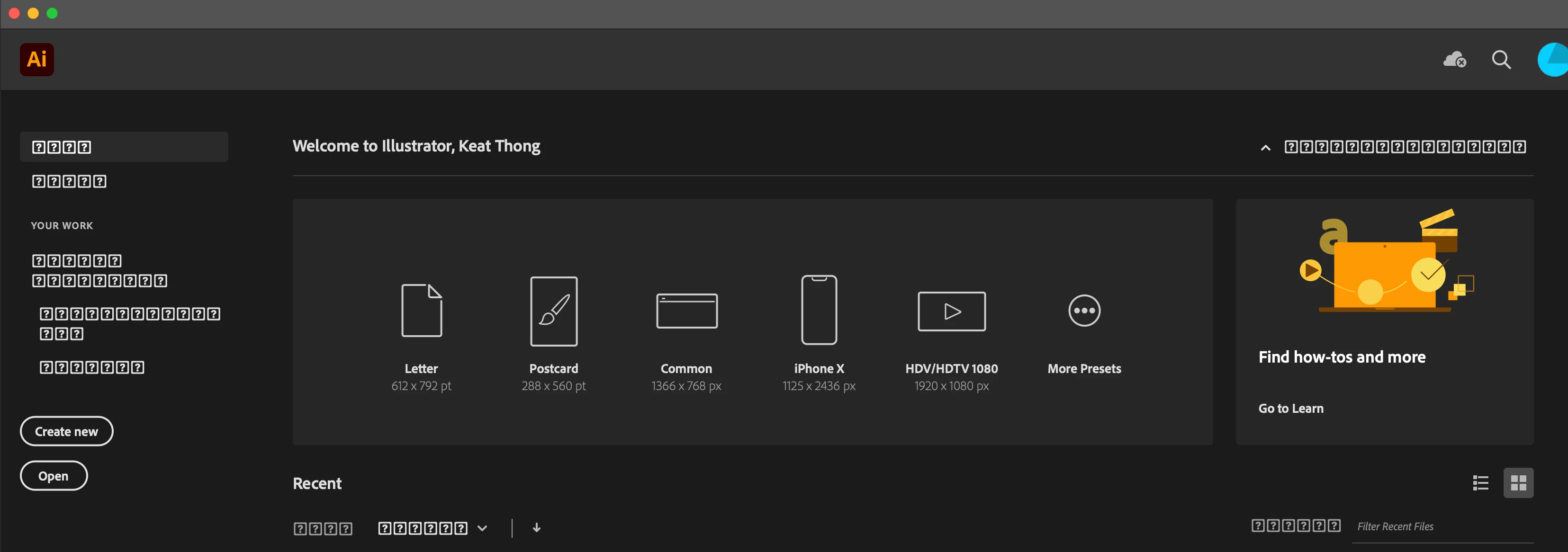 May I know what happen to my adobe account? When I open all the Adobe app, (Ai, PSD, AE, ID), all of the launch page appear like this. (Pic attached). Hope could get help to solve this. Thanks.