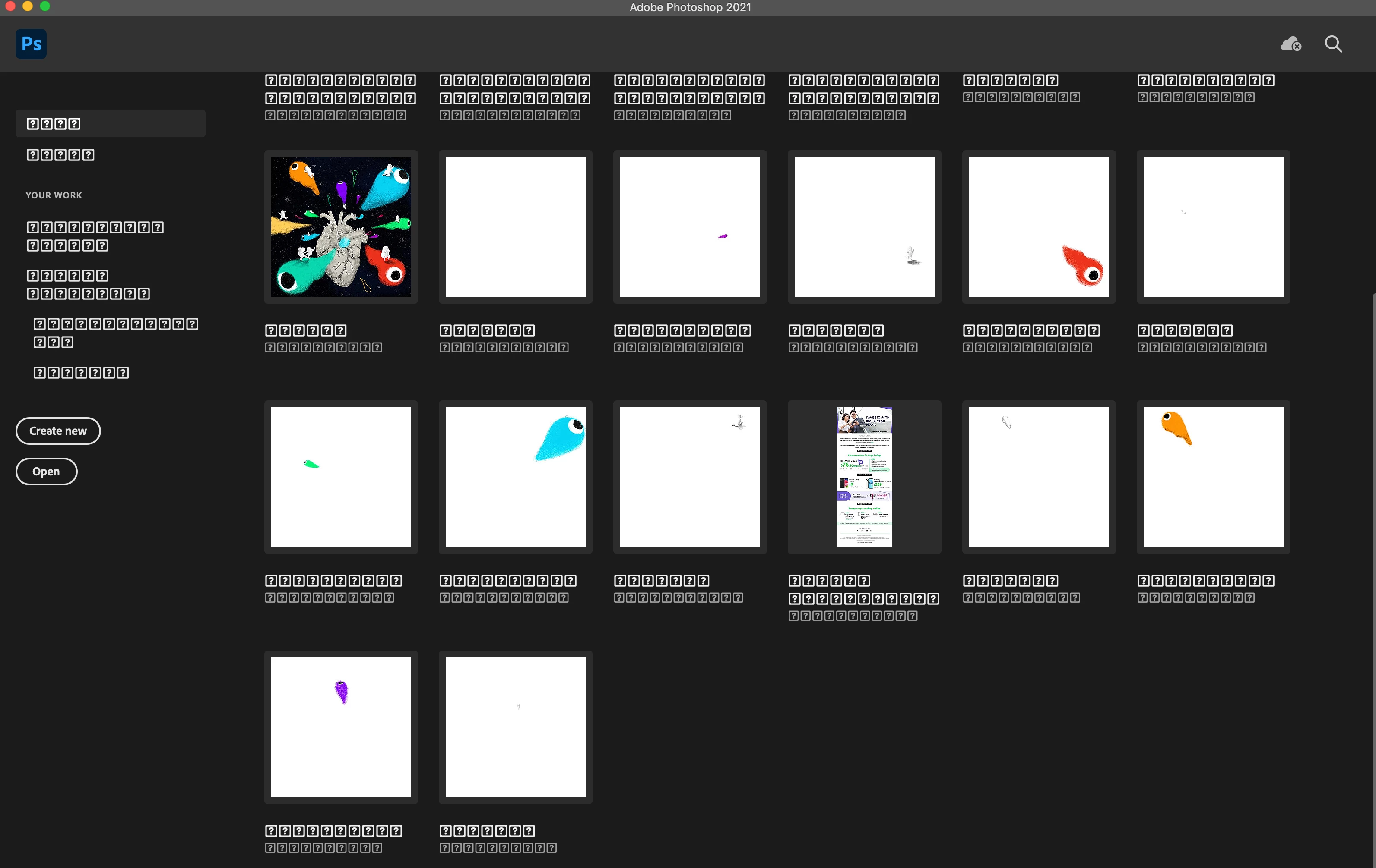 All words of my adobe software became question marks