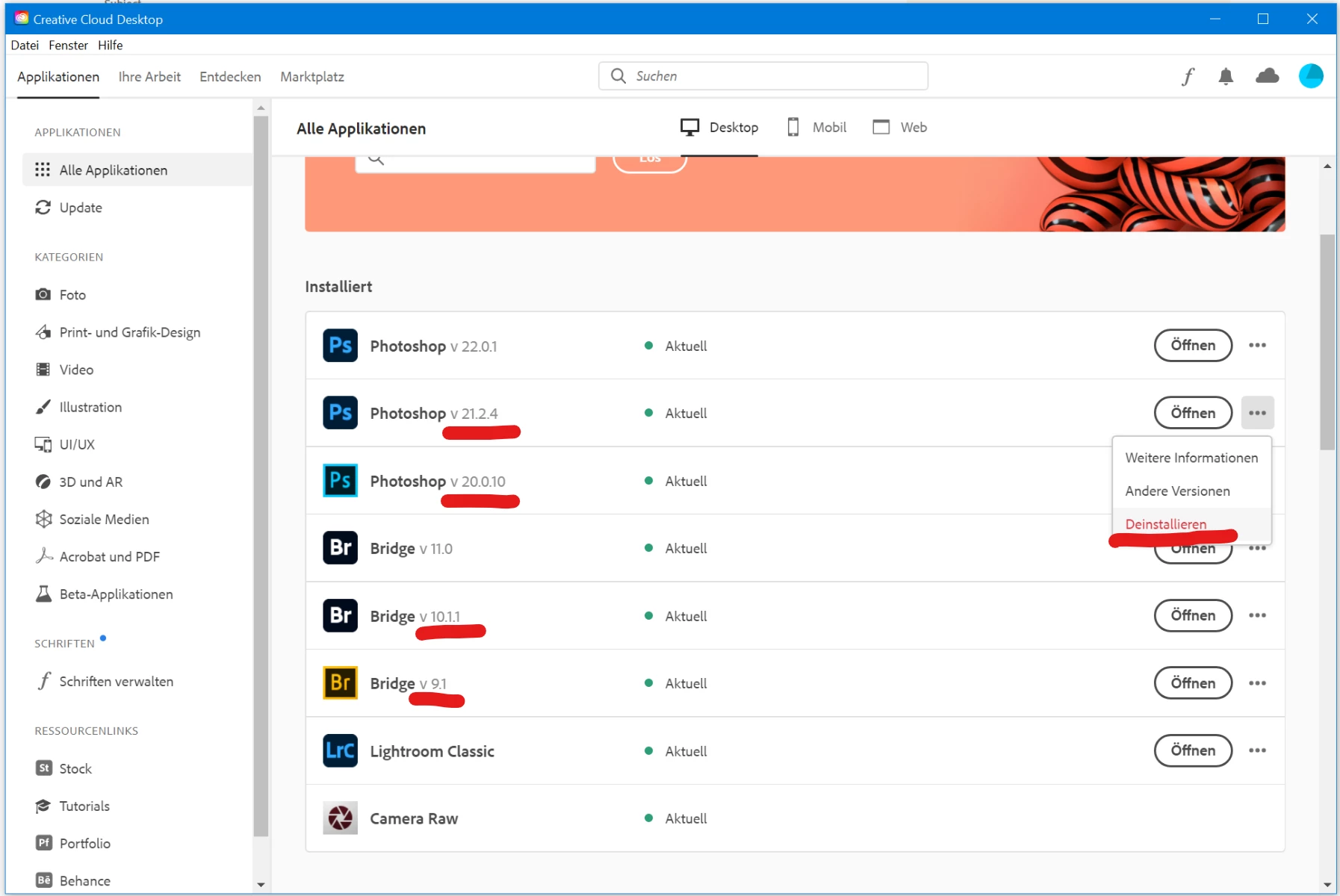 bei mir sind alle im Bild sichtbaren Versionen vorhanden und starten auch.