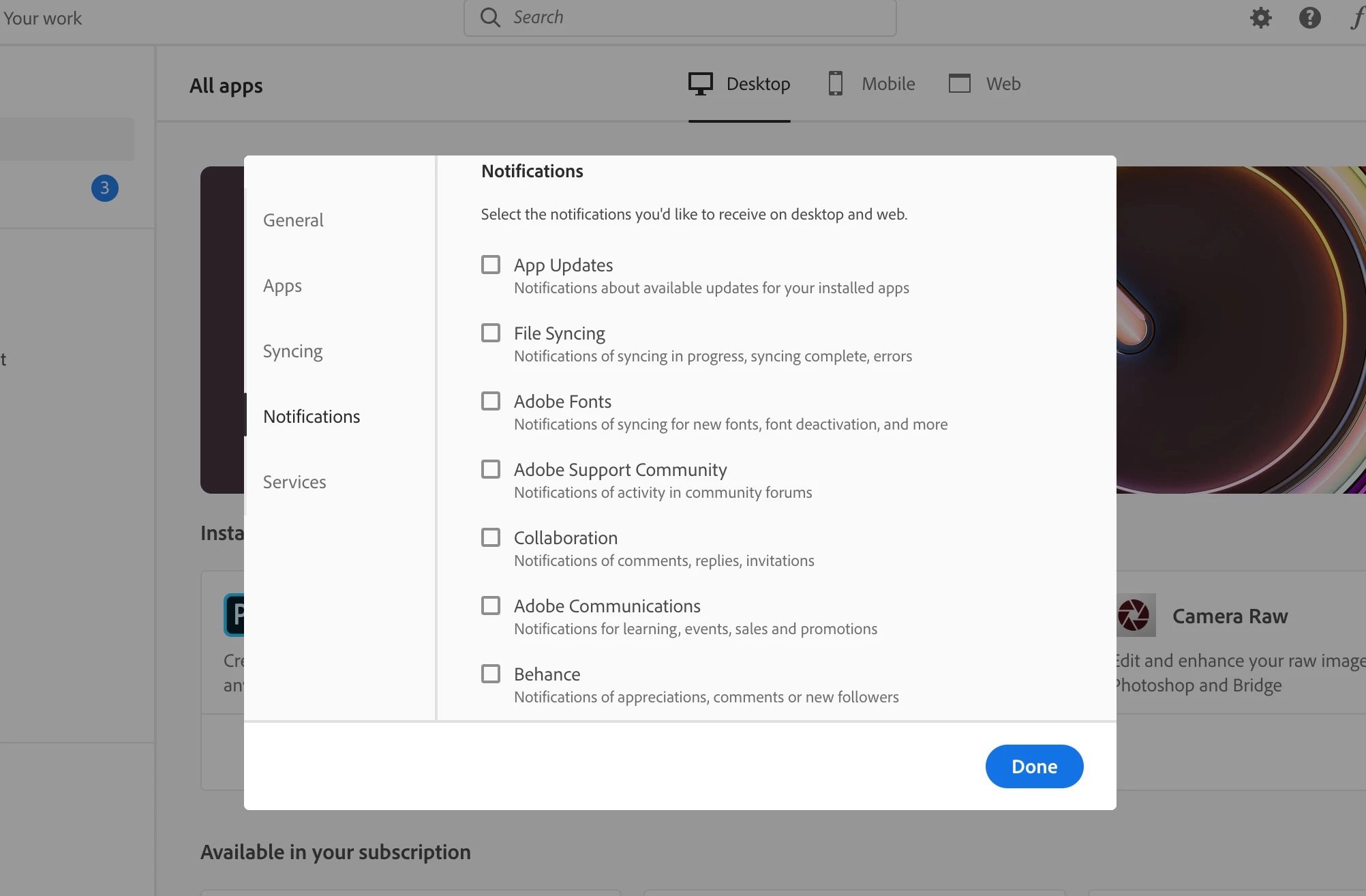 I've TURNED OFF all my notifications in Creative Cloud/Preferences/Notifications