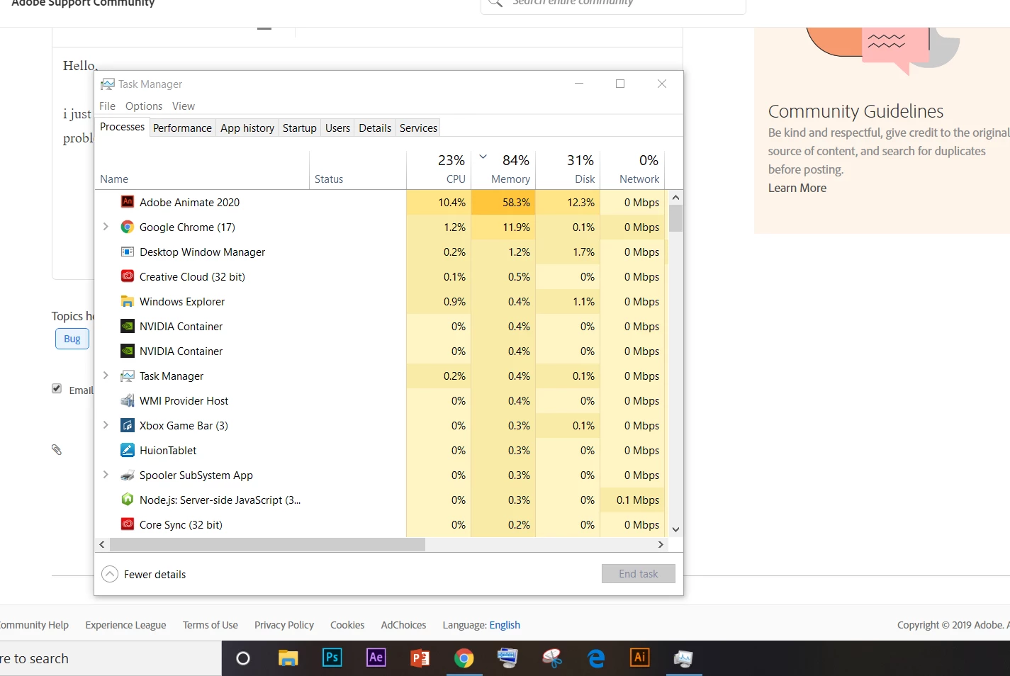 i just installed animate CC 2020, and it doesnot show up on my pc screen, in processes running with out problems, any fix? i tried reinstall but no help