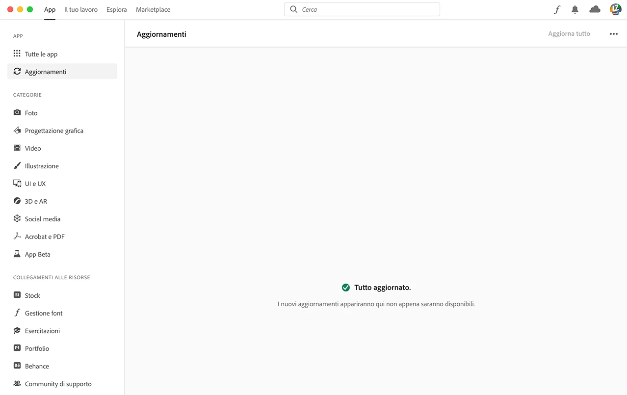 Applicazione Creative Cloud non aggiorna i software in Mac