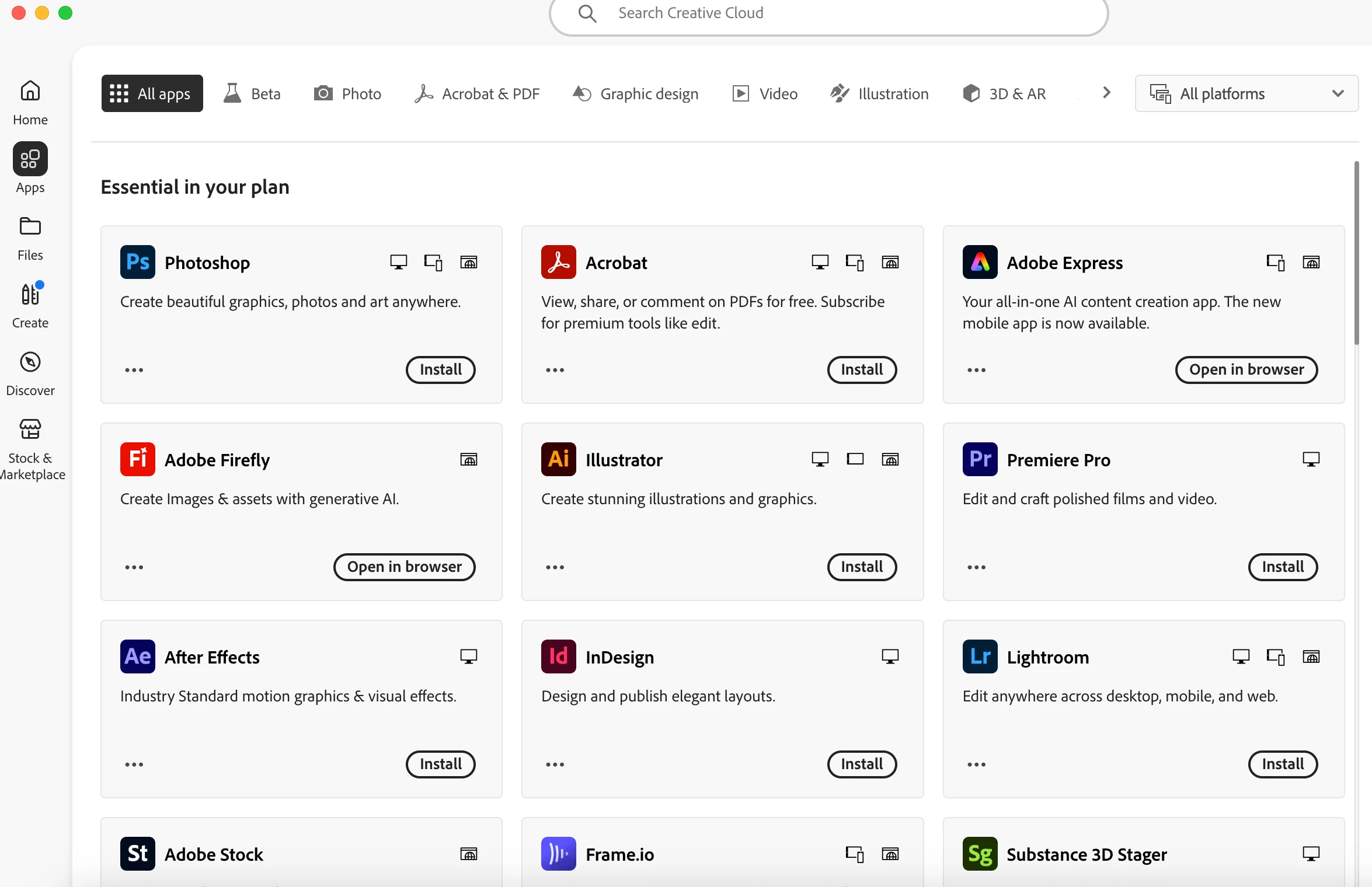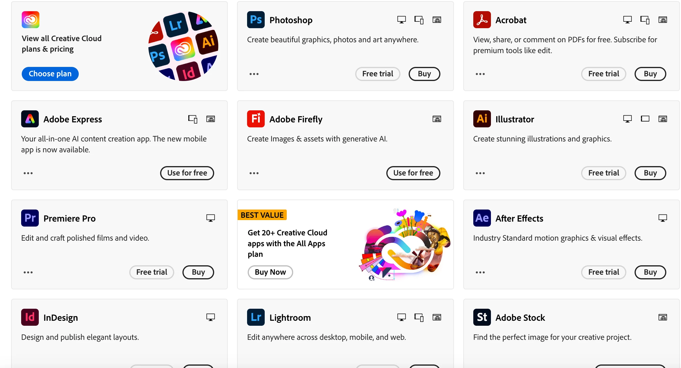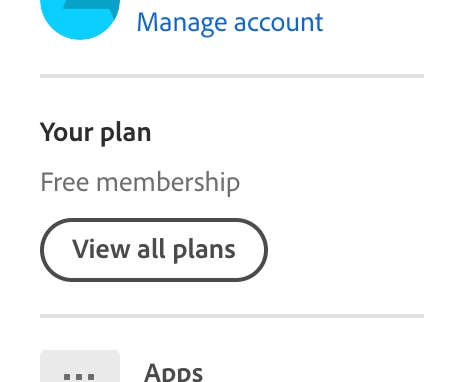 3. Despite having access to all adobe programs, the account is listed as having a free membership.