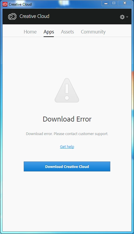 Creative Cloud "Download Error" message