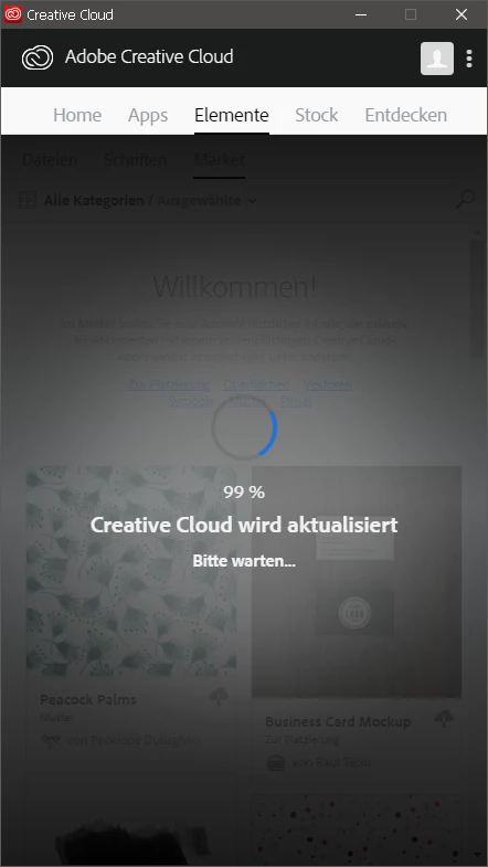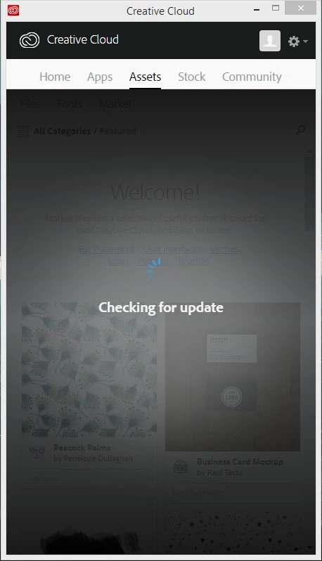 The 'Assets' tab on the Creative Cloud Desktop application is always "Checking for update"