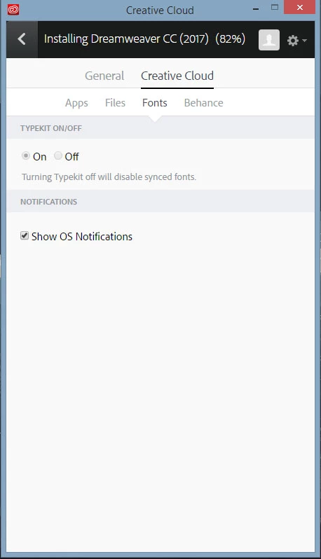 Typekit ON/OFF preferences are greyed out.
