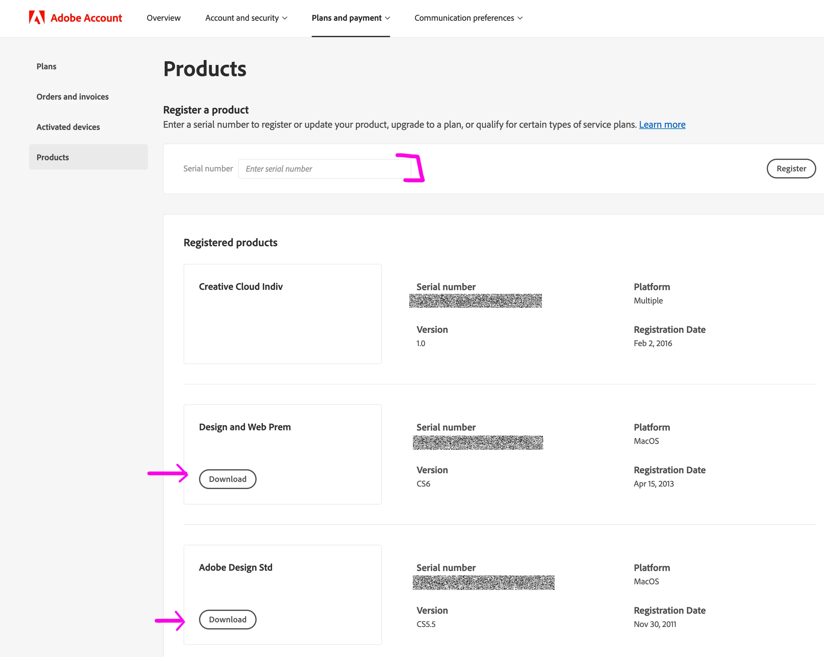 I had a HDD failure and am not able to reinstall CS6 Standard. I have it installed on a second Mac but I only use one at a time. I sadly installed CS 5.5 but cannot get the updates due to formerly having CS6 installed. I have spent days trying what Adobe tells me but I always wind up with "Your serial number has expired." Additionally tells me that my software is not genuine. I own ALL versions of Pagemaker and Creative Suite and they were all registered but do no longer show up on my account.