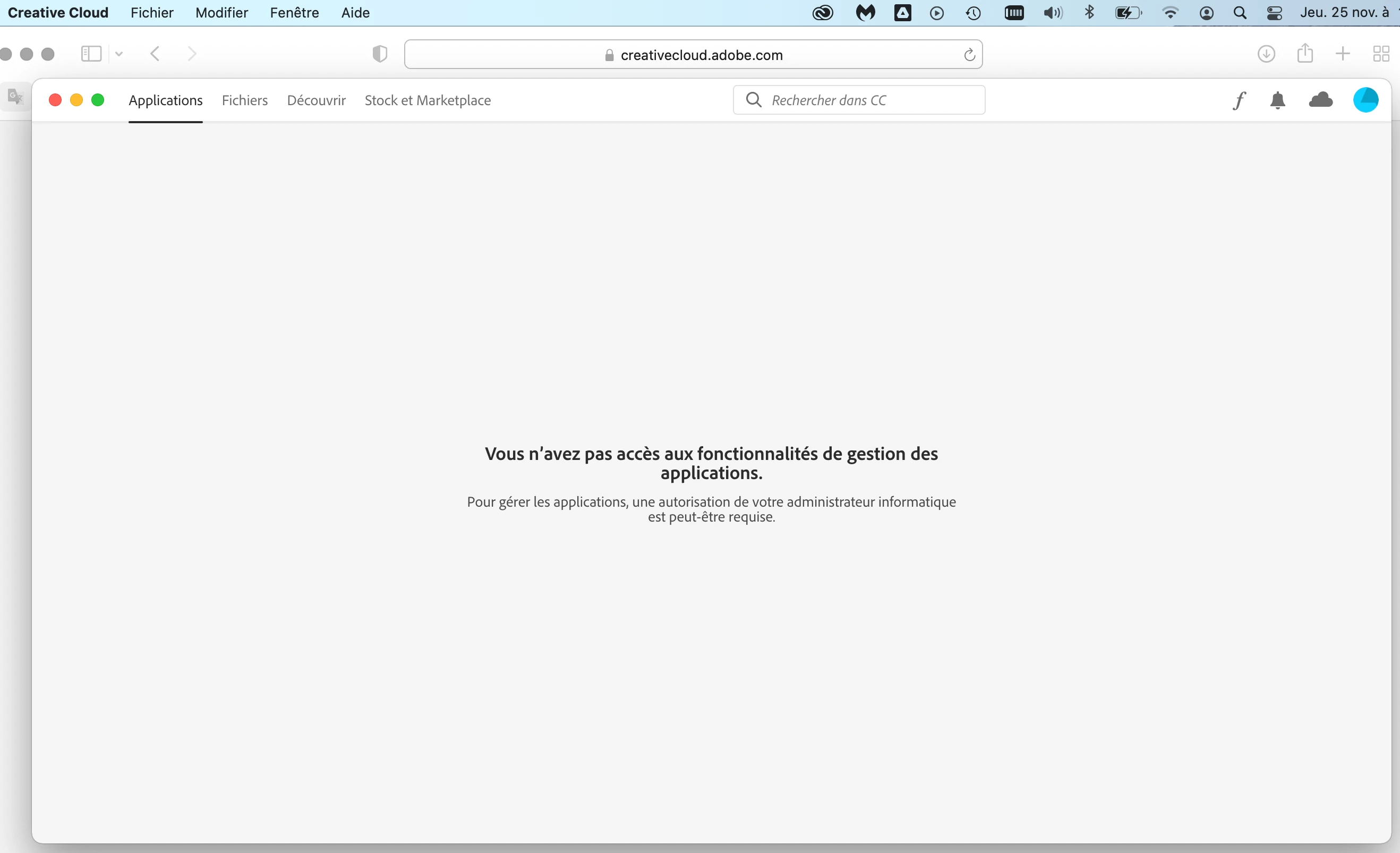 Bonjour, Impossible de télécharger les logiciels de la suite Adobe. J'ai un message qui s'affiche lorsque j'essaie de renter dans adobe cloud. Je viens de payer l'offre étudiante aujourd'hui même. J'ai donc normalement accès au téléchargement. Que dois je faire ?