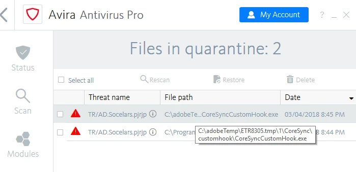 Today the Adobe Creative Cloud tries to add something which my Avira Antivirus "does" not like: