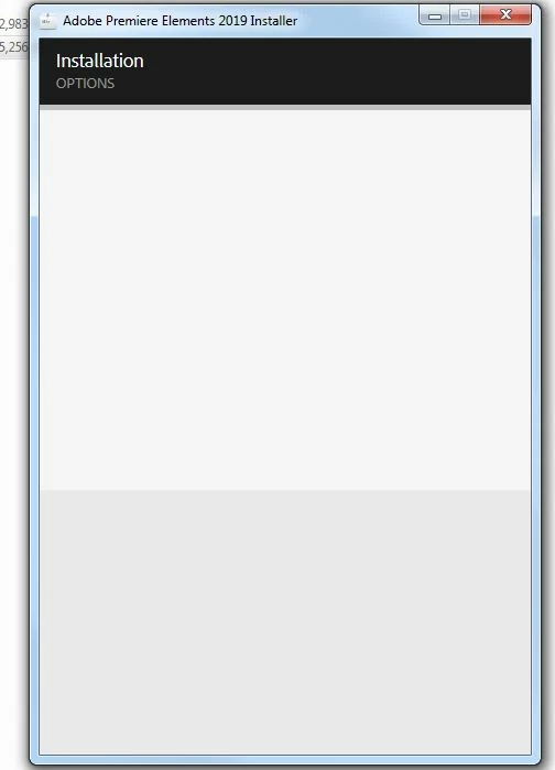 When i try to install Adobe premier elements 2019 (Offline installer or standard). All i get is a blank screen at install options and cannot progress any further. I have tried this on a couple of machines now and get same error. (see screenshot)