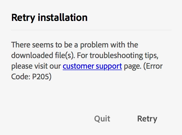 Can not install Creative Cloud - Error P205