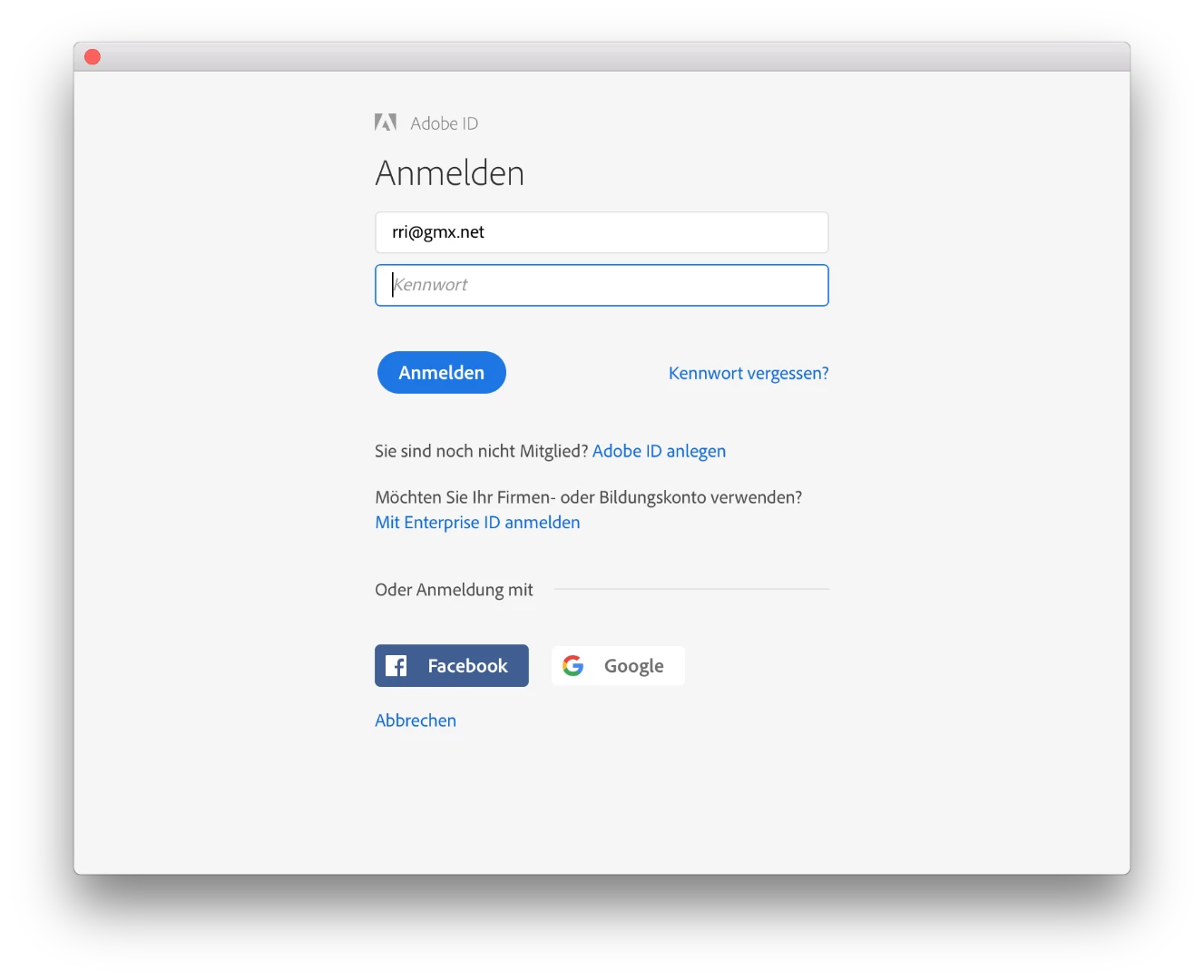 After clicking on "Öffnen" (Open), Ps 2019 starts, pops up a login screen (even being already logged in correctly to Adobe CC) - of course, I type in the correct password, please do not reply with a suggestion like "check your password", it is fine, I can log into Adobe CC also here on the web for typing this complaint, so there is no password issue caused by me. Now, I click "Anmelden" on the menu of screenshot image below