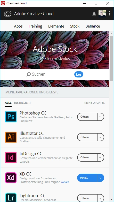 As soon as I start a program of the Creative Cloud a white box appears which tries to communicate with Adobe but has no success.