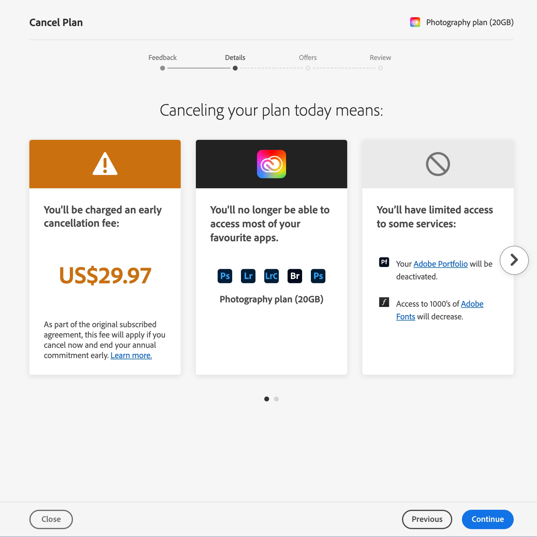 Can’t cancelation with my subscription because Adobe charged you with an early cancellation fee very