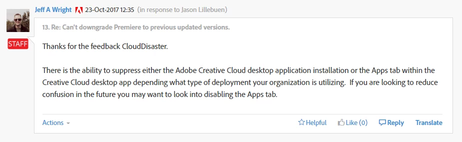 Can't downgrade Premiere to previous updated versions.
