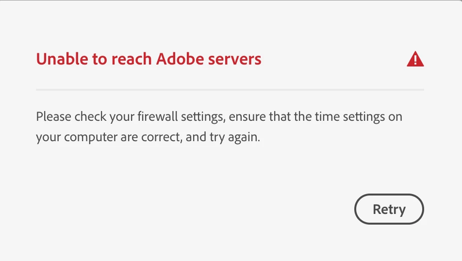 I turned on my laptop today and went to download Premire Pro from the Creative Cloud App and all of a sudden I get this message below (screenshot). I've never had an issue before and have had CC for years. I have a MacBook Pro and have no idea why this is happeneing. I've searched and tried all kinds of solutions and nothing works. My desktop works just fine and my firewall isn't even on! I've uninstalled and reinstalled CC and nothing works. HELP anyone!