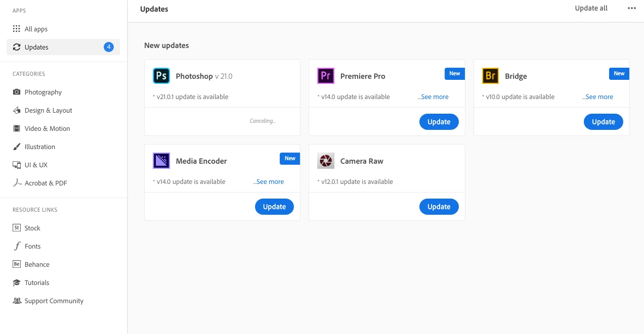 Can't download/update photoshop